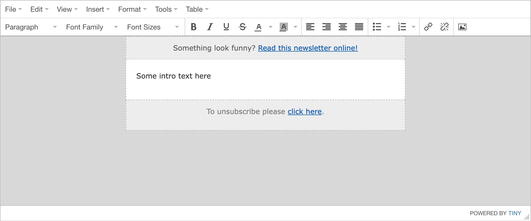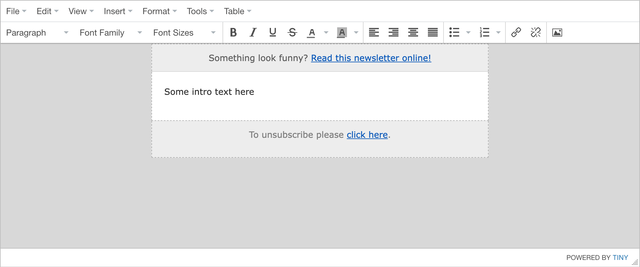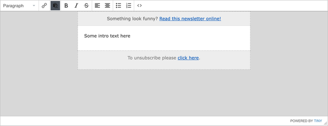 table_toolbarwe only kepttabledeleterowas we are not editing tables. We only use tables to create newsletter layout with best compatibility for bad email clients (Outlook). toolbarwas customized to only include items which we need.- Added