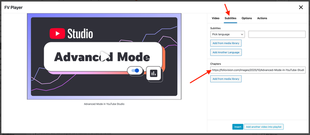 The chapters import is simple, as you just insert the video and they appear automatically. All it needs is the API key configured as shown above.