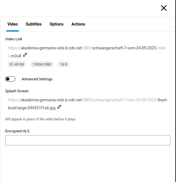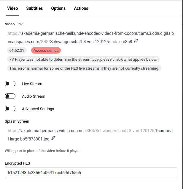 You were also talking about a backup CDN. Is it also possible to configure it with the player? And would it be possible to configure a CDN-provider that is located in Russia?An issue I’ve noticed when adding or replacing a video in the playlist: when I’ve uploaded a new video, the encryption key appears in the editor. But after the encryption process is finished, the encryption field is empty and I have to assign the video again from the media selector to get it back. See the 2 screenshots